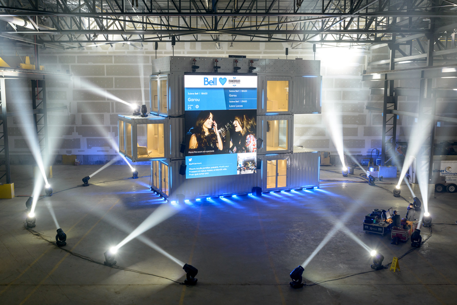 Our multiple award-winning flagship array is a breathtaking example of modular design and ease of mobility. Customizable for any brand, it creates an astonishing centrepiece for a client’s biggest and most prestigious road events. 6 containers soaring 36 feet, a total of 2176 sq. ft. of useable space on 4 levels, exterior giant screen capability, interior multiple LED screen capability, available VIP rooftop deck, HVAC ready and much, much more.