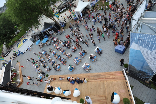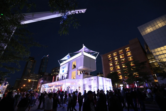 The Bell Pavilion was a huge success at the FrancoFolies and the FEQ and received great media coverage. Upon seeing the steel monolith rising out of the crowd, festival-goers could not help but be curious and make their way over. Both festivals attracted a record number of attendees thanks to the hub created by Bell.