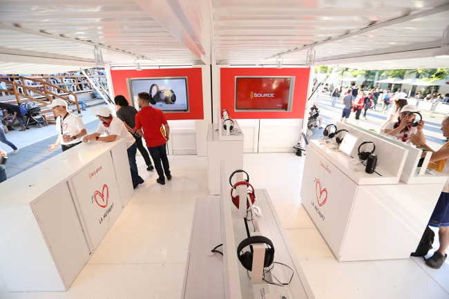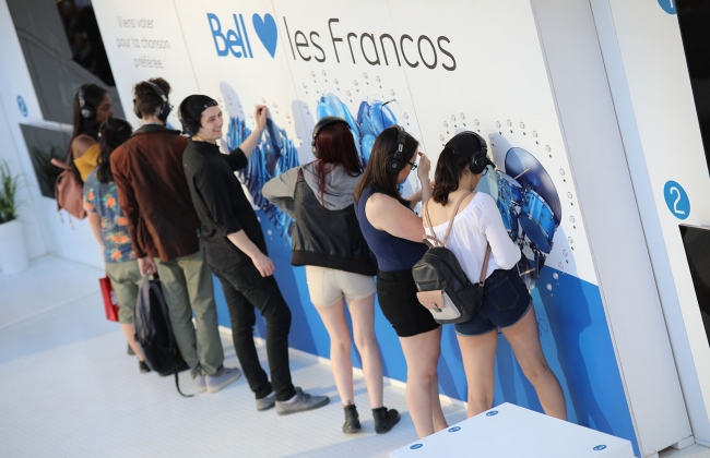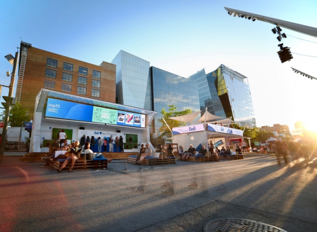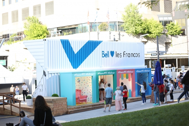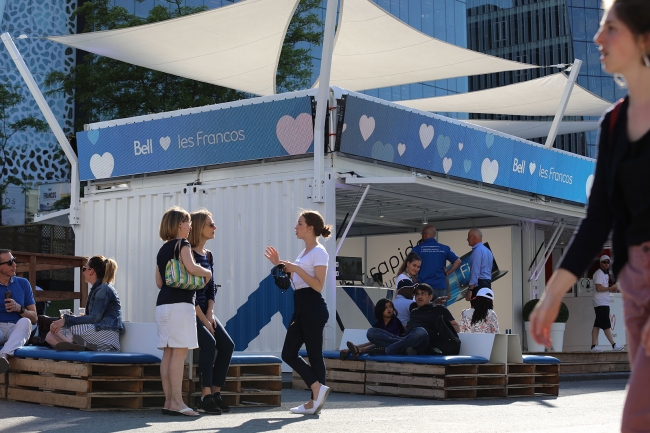 Once again, Bell was right in the heart of the Quartier des spectacles entertainment district for the30th edition of the Francofolies de Montréal summer music festival from June 8 through 17. With public greeting space both inside and out the BNC 240 and Split 40 units, the marketing installation was perfectly suited to welcoming people to the Bell brand.