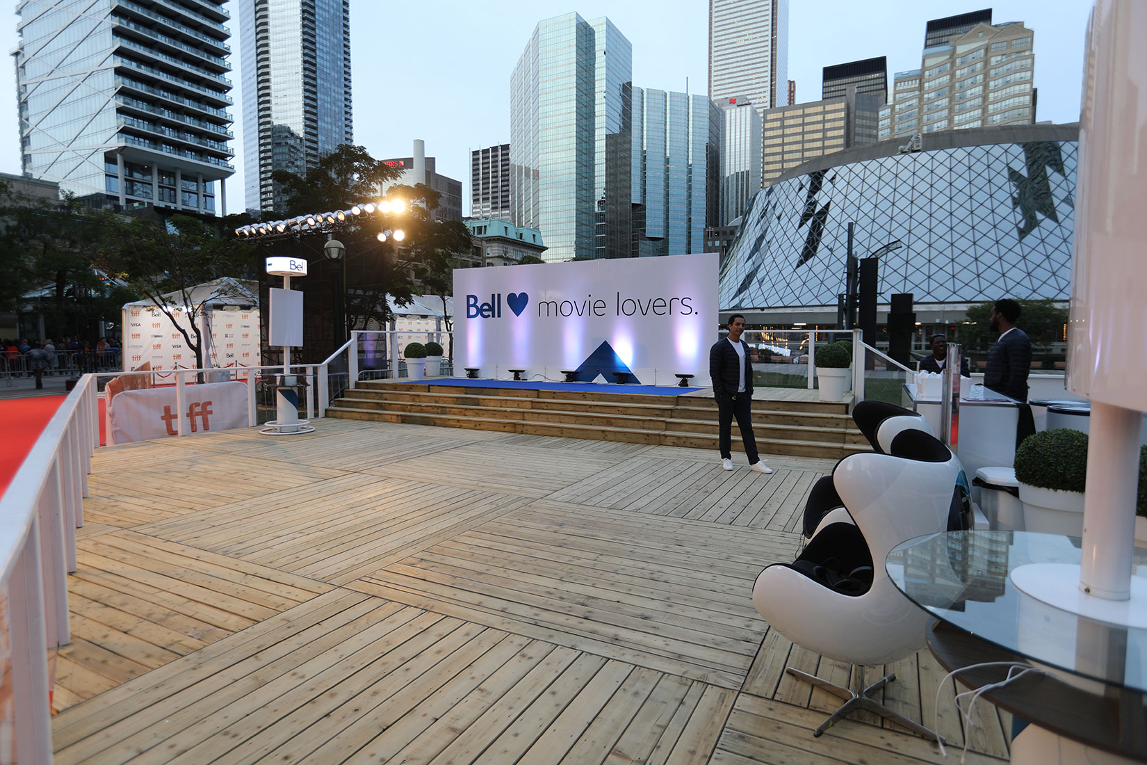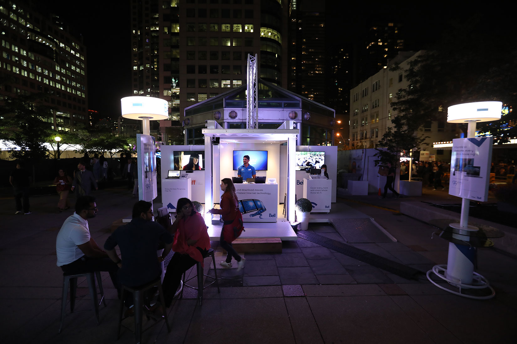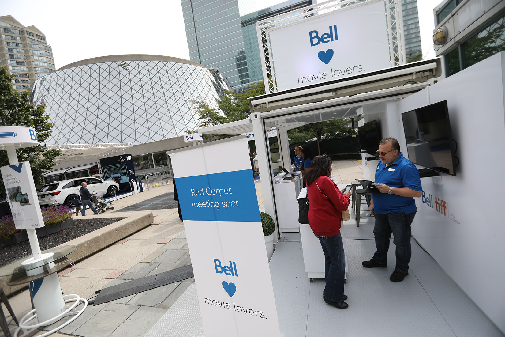 For Tiff 2018, Bell elected to show off its products in the thick of the action, this year on the sidewalk on KIng St. near Roy Thompson Hall adjacent to the festival’s epicenter at David Pecaut Square, where festivalgoers would gather on their way to see films after the red carpet activities were over.