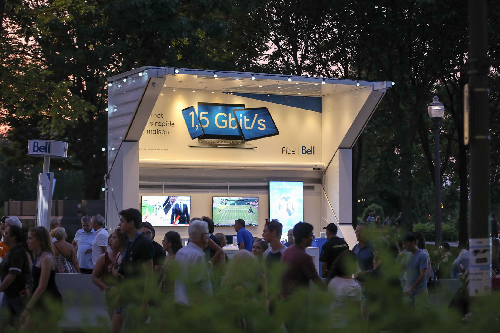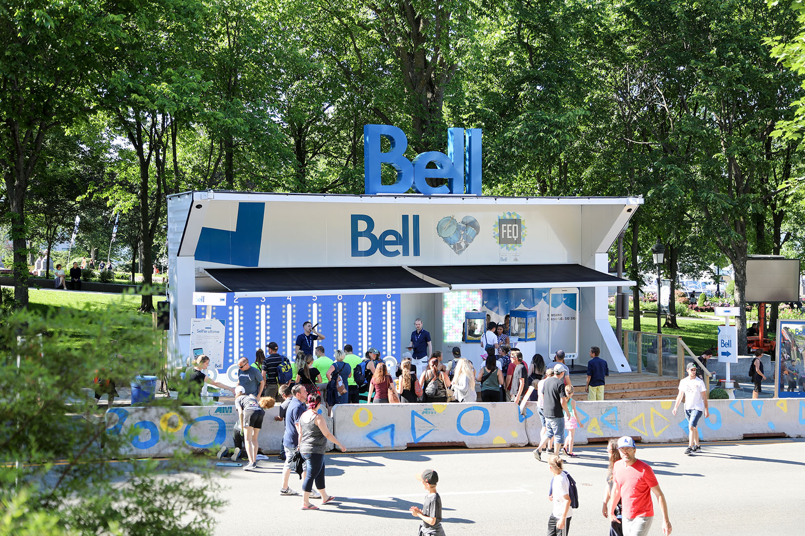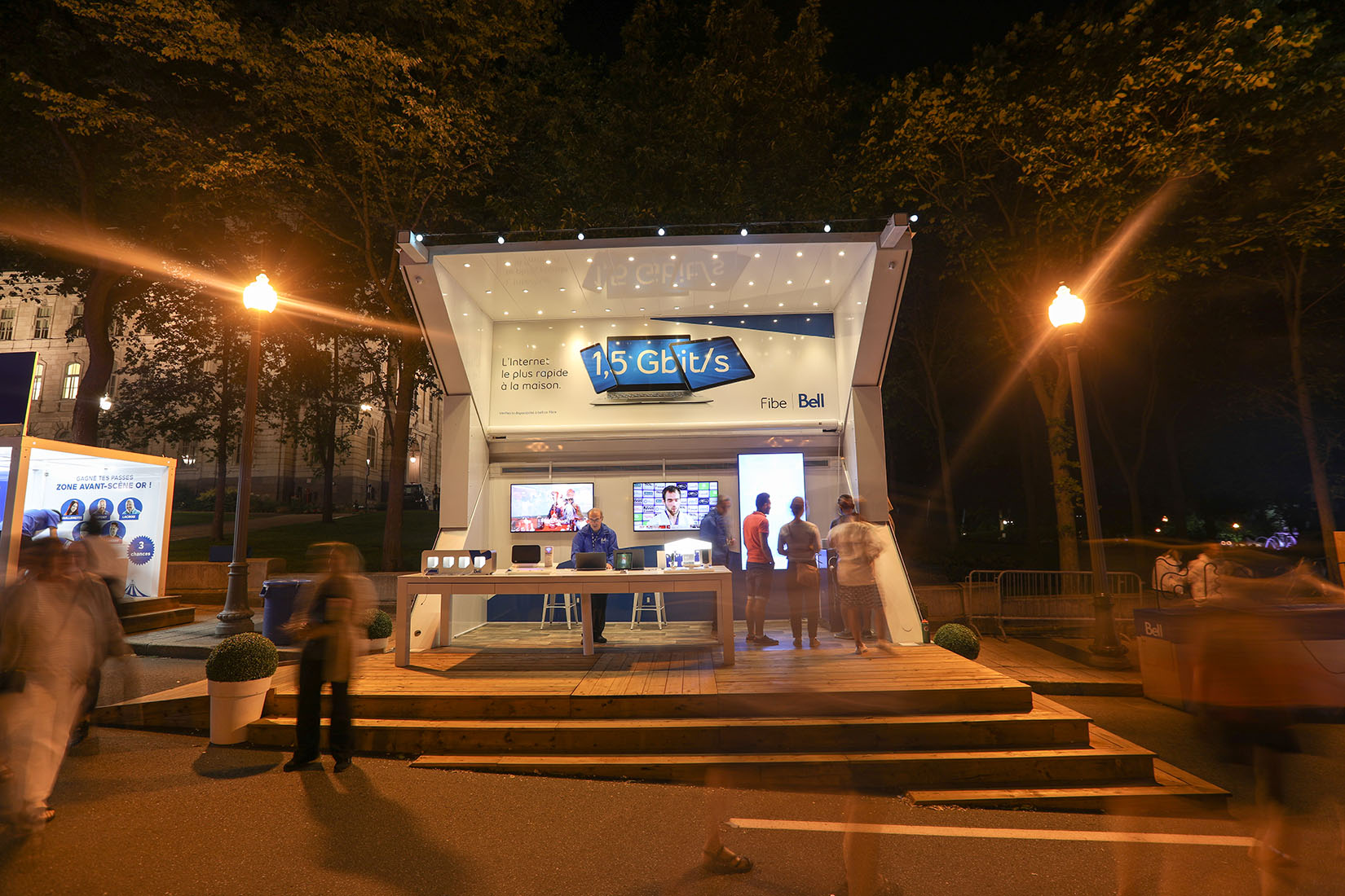 Ongoing festival sponsor Bell always goes big in Quebec City. This year Bell marketing activations were centred around a Split40 unit from Loki Box Design customized for the occasion as well as six double-stacked Loki Cubes, a Split20 unit, an outdoor giant screen, custom furniture and more for maximum festival visibility.