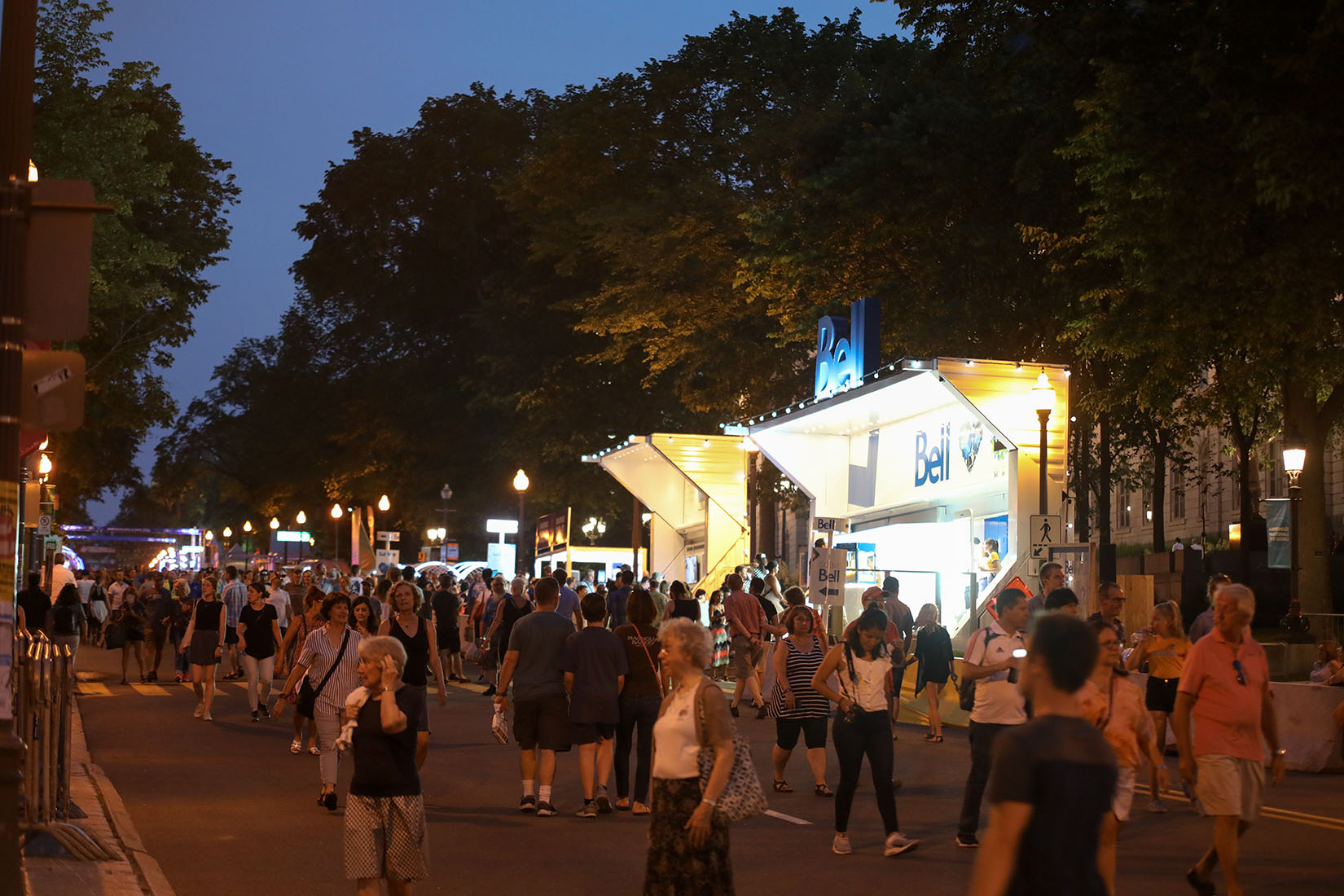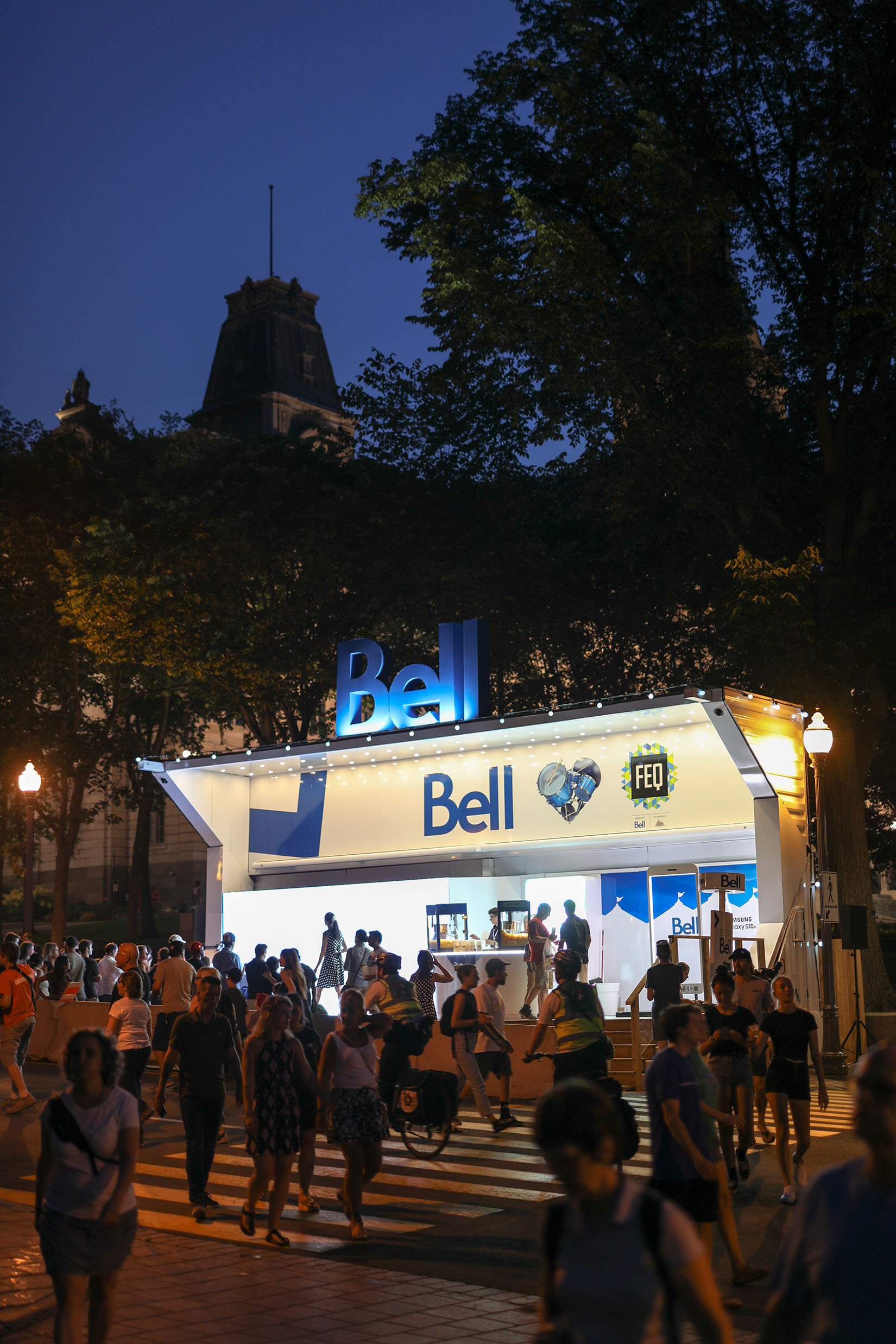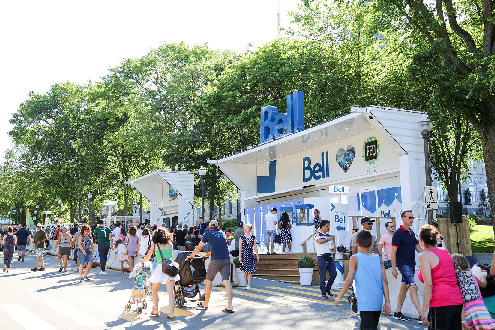 Ongoing festival sponsor Bell always goes big in Quebec City. This year Bell marketing activations were centred around a Split40 unit from Loki Box Design customized for the occasion as well as six double-stacked Loki Cubes, a Split20 unit, an outdoor giant screen, custom furniture and more for maximum festival visibility.