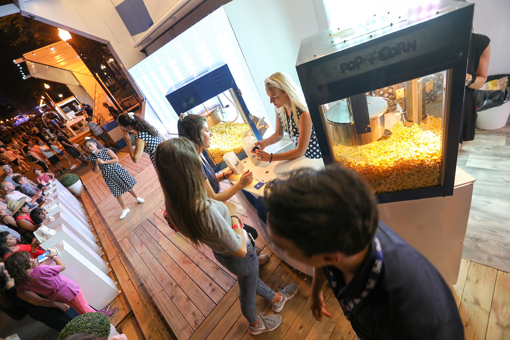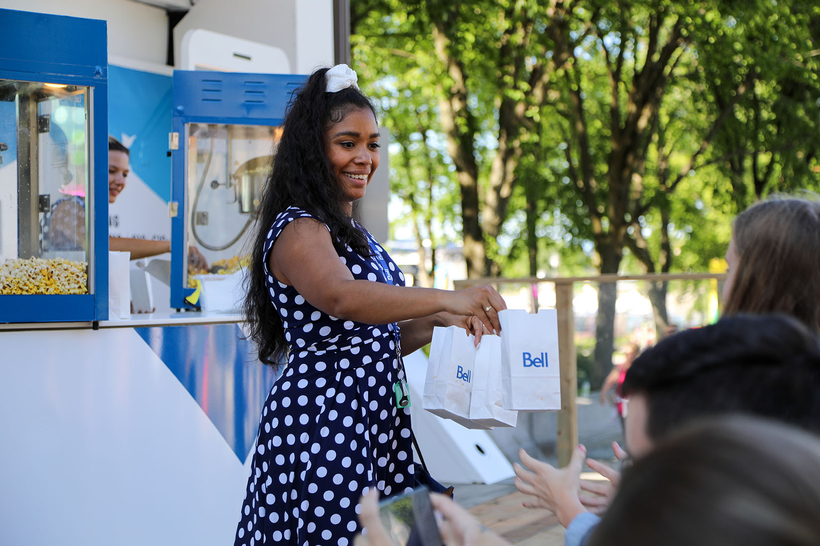 Bell’s festival marketing activation was designed to bring festivalgoers back to a happier, simpler time with plenty of fun and games, but with the magic supplied by modern digital technology. In one creative marketing game, players used a Bell Huawei phone to fight a virtual water-gun contest on a big screen, aligning the phone to start the graphic water columns filling. Everyone who played got popcorn with special prizes for winners.