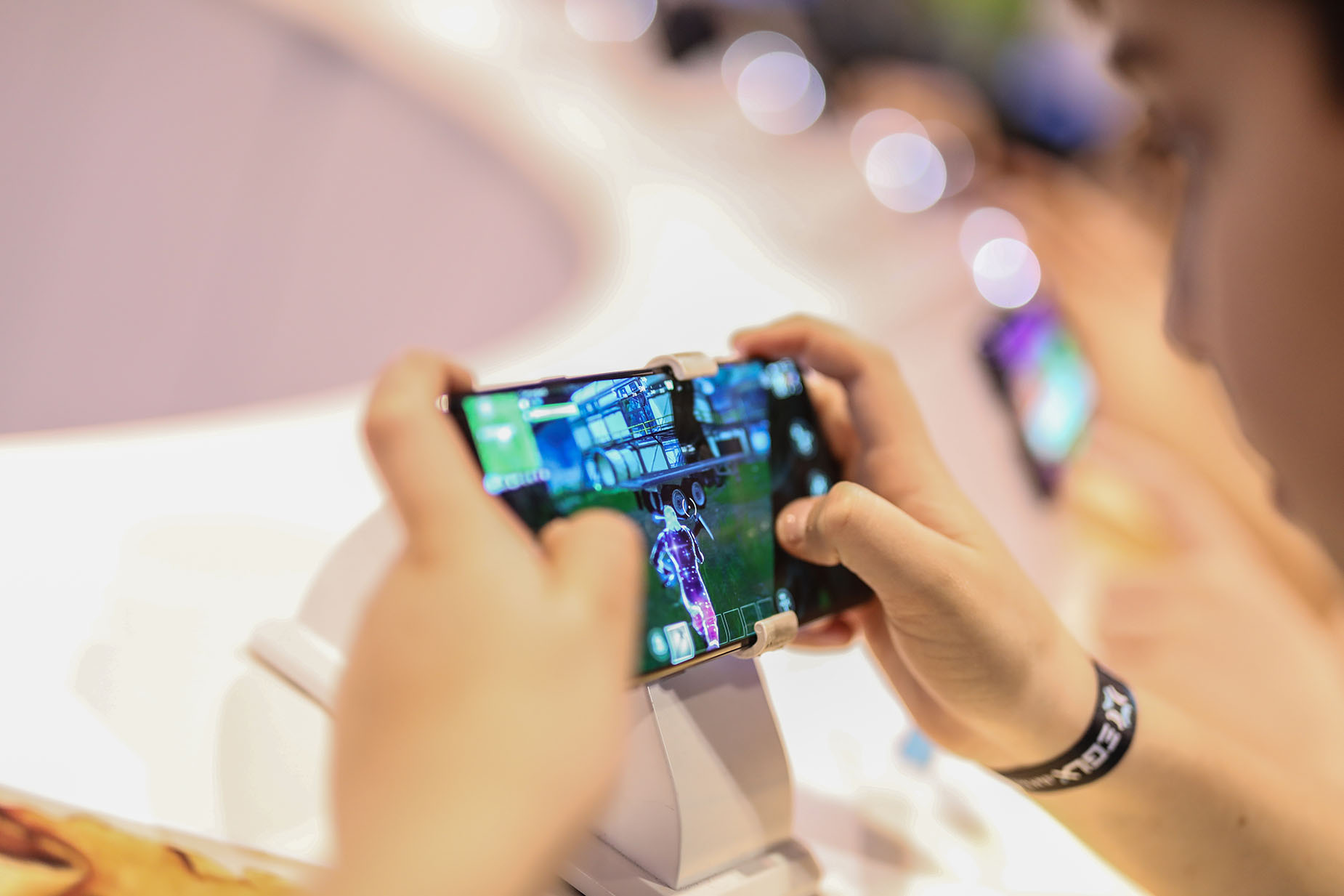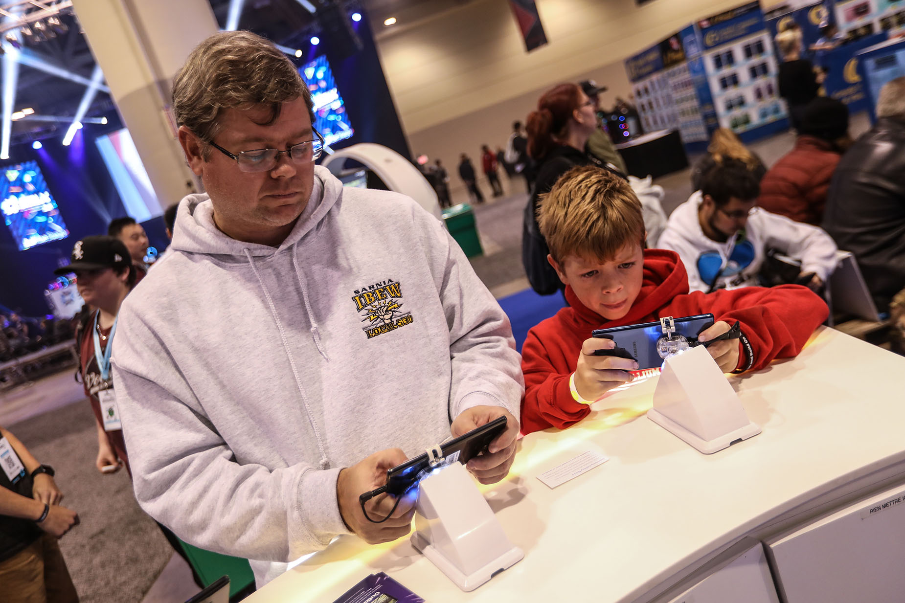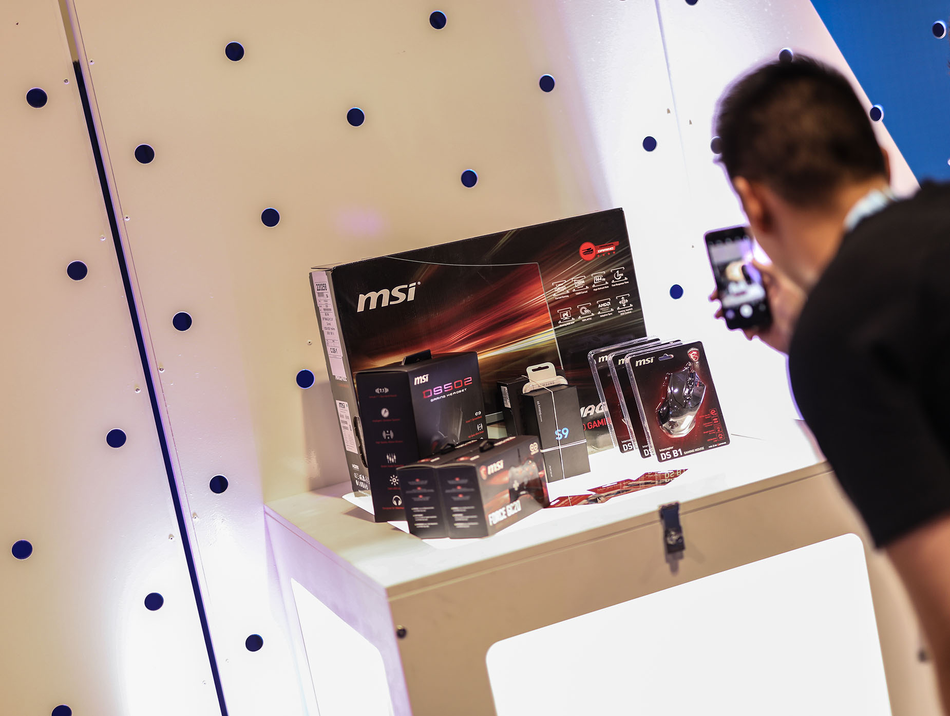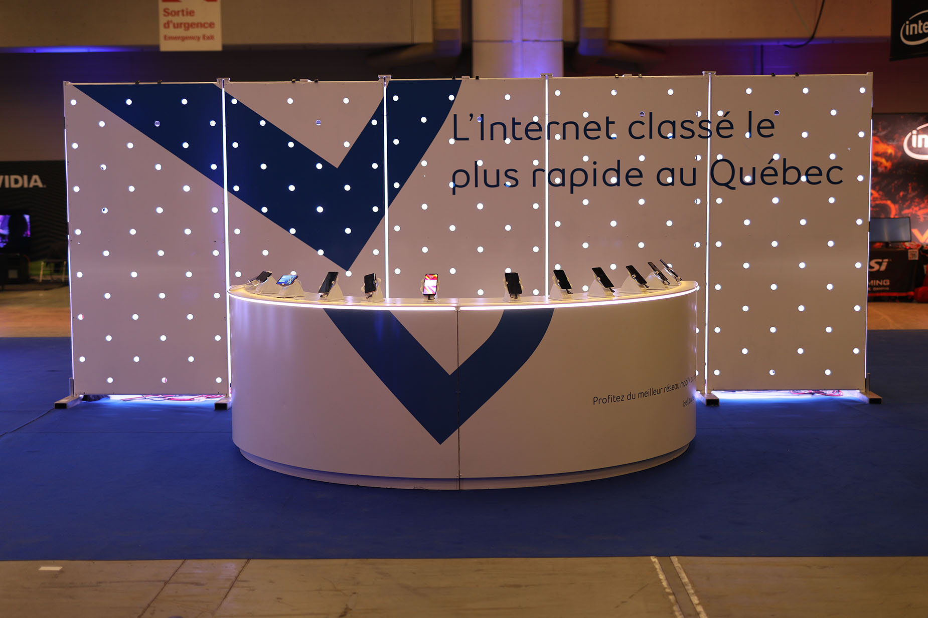 The Bell brand occupied centre stage on the tournament floor, with a demo booth for its mobile phones built by Loki Box Design at one end of a giant blue carpet that defined the Bell zone. Gamers could also give the cocoon-like Loki Cube a whirl for a more intimate, immersive place to play secluded from the very crowded main room.