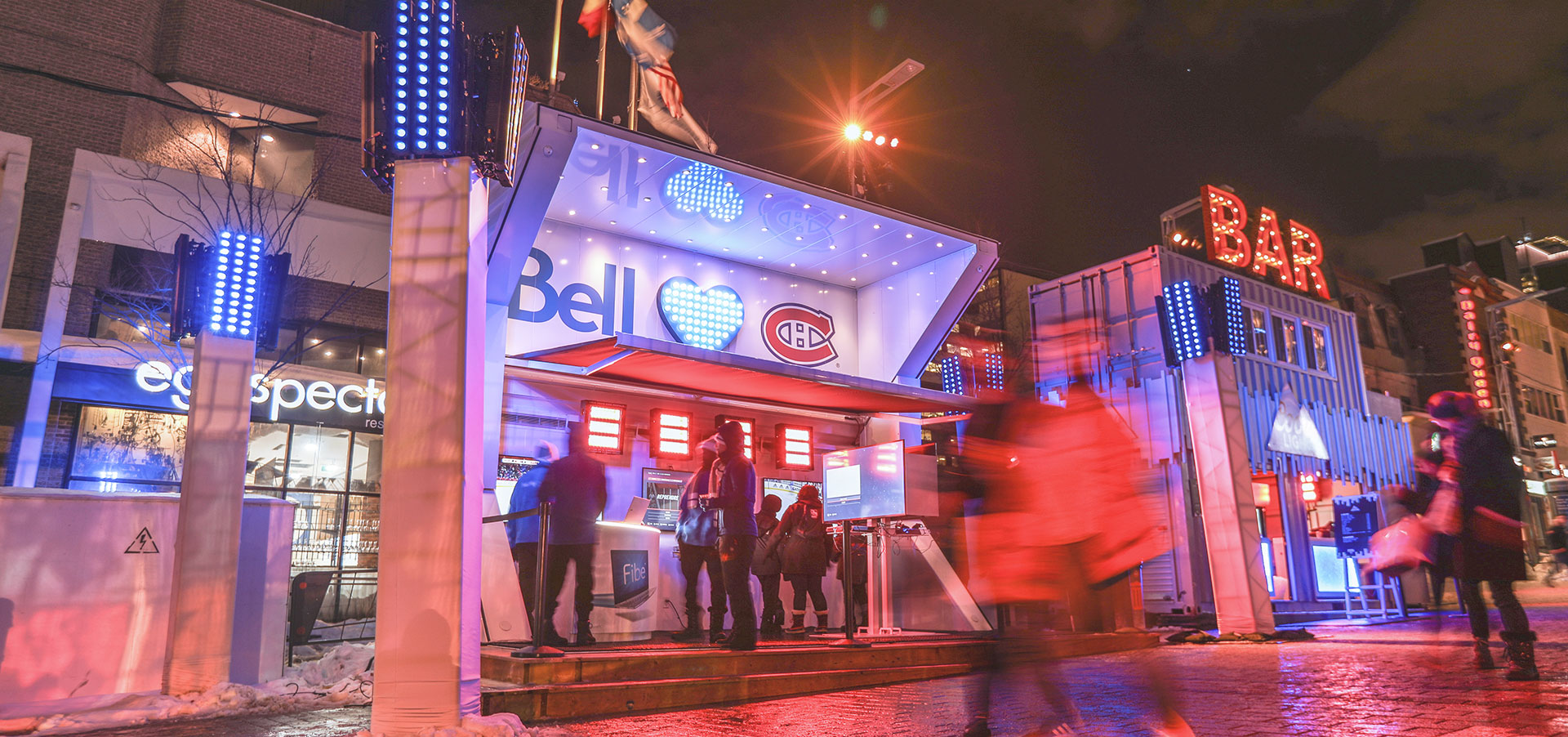 Montréal en Lumière, the 2019 edition, held February 21 to March 3, was once again a premier event for the city and one of the world’s largest winter gatherings and experiential marketing opportunities. Bell continues to be a major sponsor and was present everywhere on the festival site, with Loki Box Design providing marketing activation kiosks and pop-up booths for multiple activities.