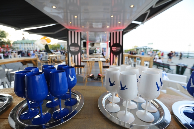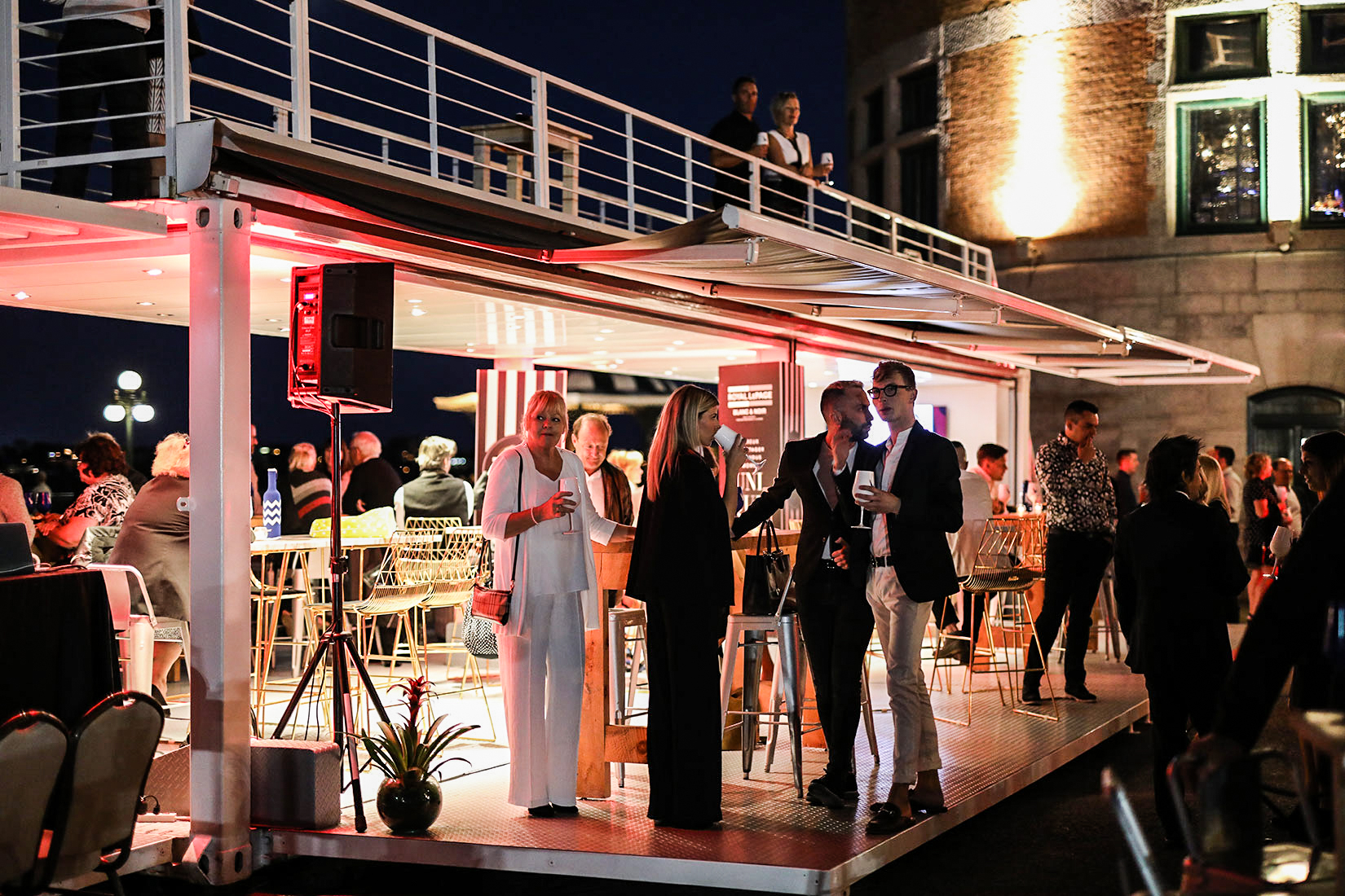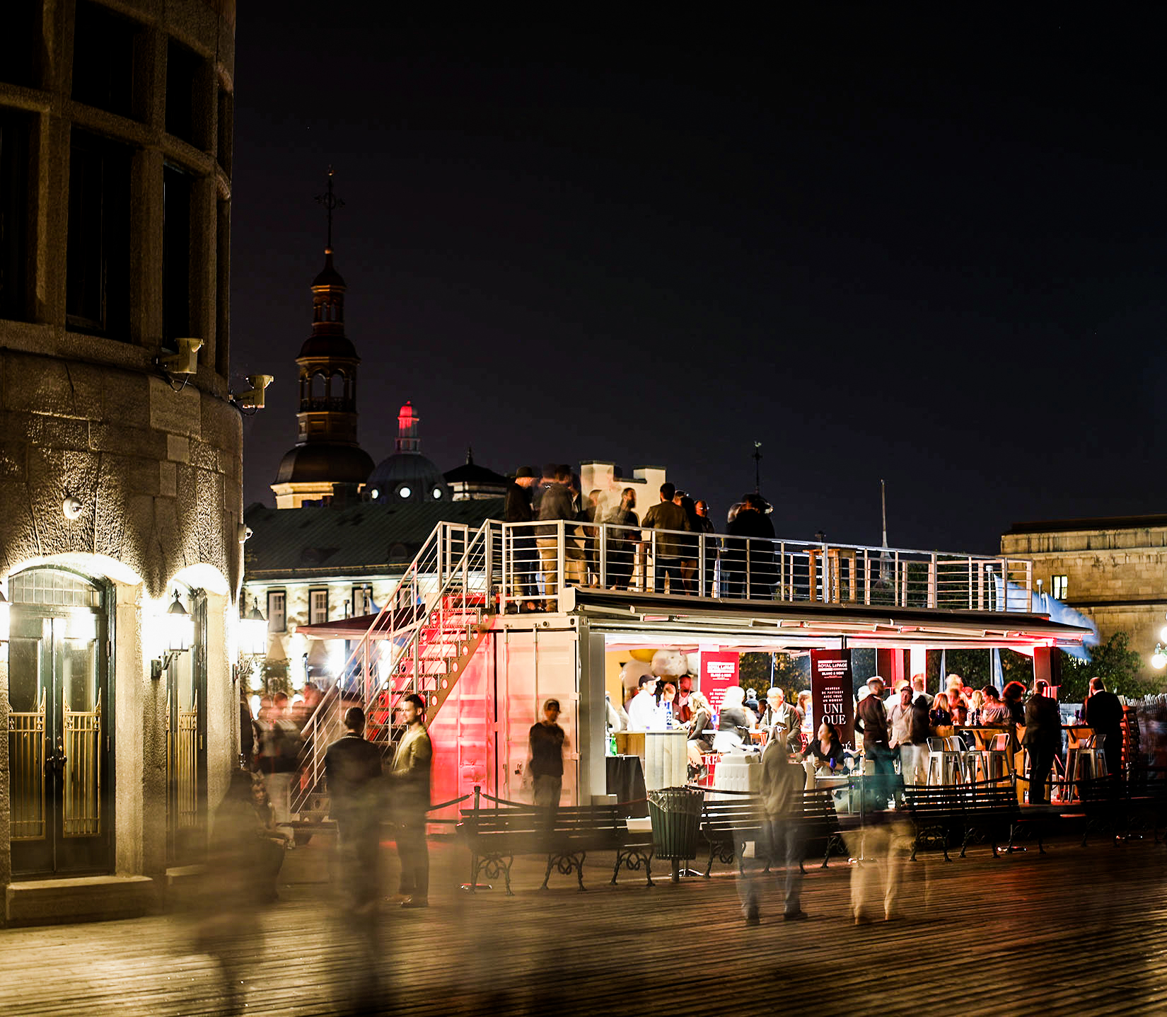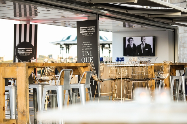 Floor extensions with awnings and satellite cocktail seating extended the pop-up bar’s footprint on the terrace. The marketing activation featured an invitation-only VIP cocktail with elegant bites to eat in a very chic atmosphere under the sultry night skies of beautiful Quebec City.