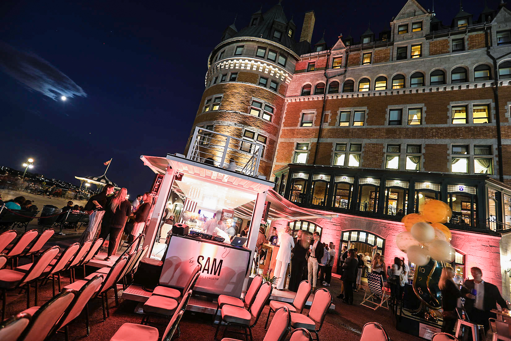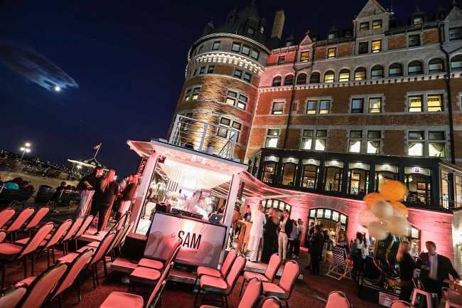 Mobility can also mean moving a store or a business - or in this case a restaurant -  just a few feet if the goal is to get outdoors or create a special ambience.That was the case when Sam Bistro in Quebec City’s historic Château Frontenac decided to create a pop-up Mobile Bar adjacent to the hotel on Dufferin Terrace on the occasion of the Grand Feux Loto Quebec fireworks festival.