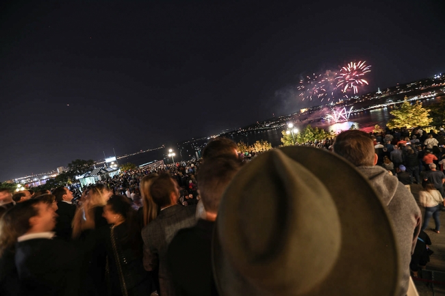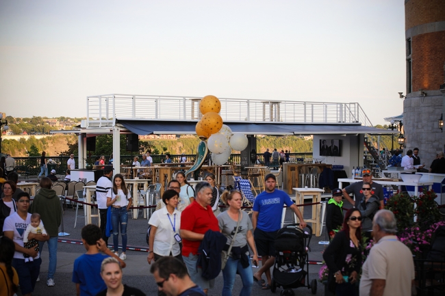 The luxurious bistro and lounge took its ambience and furnishings outdoors with the help of a BB40 mobile restaurant created by Loki Box Design. The BB40 pop-up container restaurant, open to the air on its two long sides, created a long, beautifully lit seating area under its roof. The rooftop terrace became the ideal vantage point for viewing the fireworks, in addition to its front row seat location on Dufferin Terrace where the event is held.
