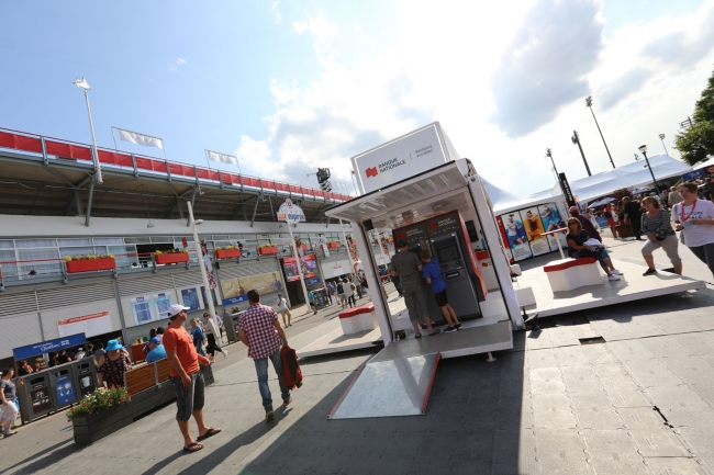 It was another busy season in Canadian tennis for National Bank and Loki Box Design with two field activations in Montreal (AFP) and 1 in Toronto (WTA) this past August. The crowds were there in force to cheer on top-ranked Roger Federer who was making his first appearance in a major Canadian tournament since 2011. A record 216,000 tickets were sold, a never-before attained figure anywhere in the world for a week of tennis. To support National Bank’s commitment to the sport, Loki was tasked with the installation of two mobile units in 2016, a BNC220 unit for Toronto and a BNC240 unit for Montreal.