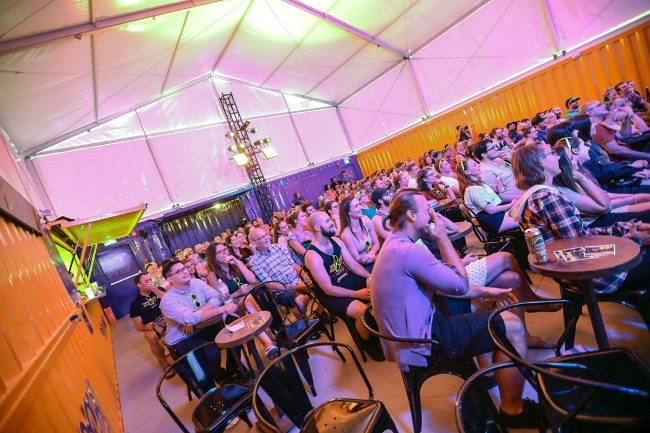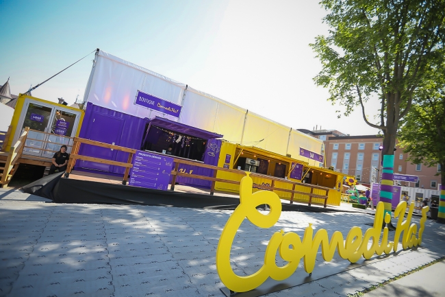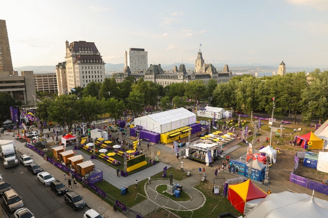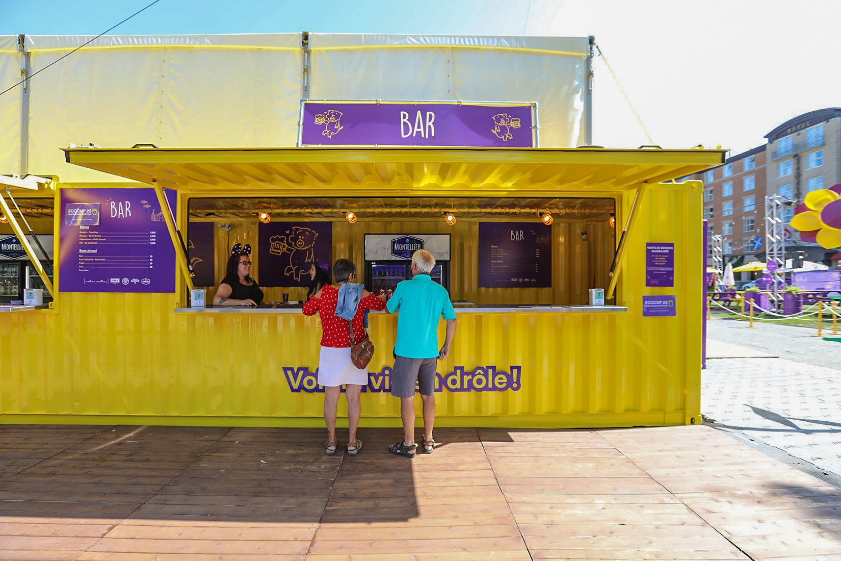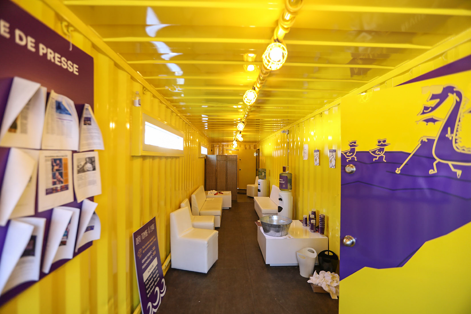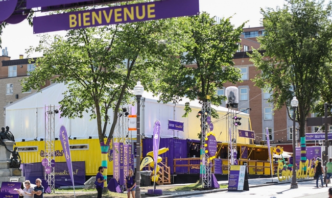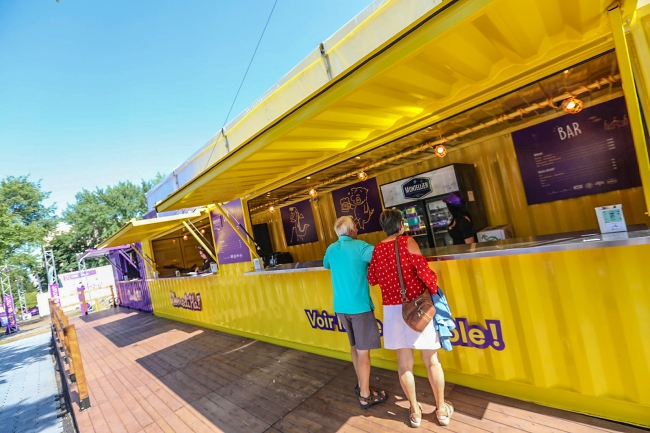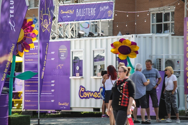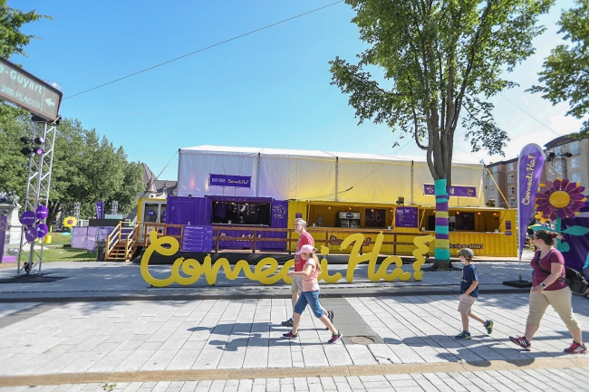 ComediHa!, a Quebec City-based comedy festival, needed a theatre installation that could be moved from outdoor venue to outdoor venue as a pop-up modular building. Loki Box Design came up with a mobile architecture concept that incorporated seven used shipping containers in a rectangular form which was then furnished with a removable canvas roof. The finished product, the world’s first mobile theatre built with recycled shipping containers, saw its inaugural performances August 8 to 19 at Place Georges V for the 2018 ComediHa! festival.