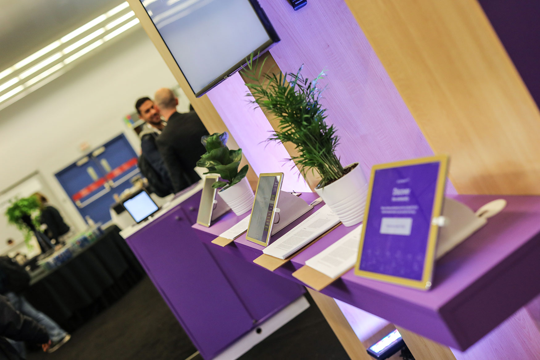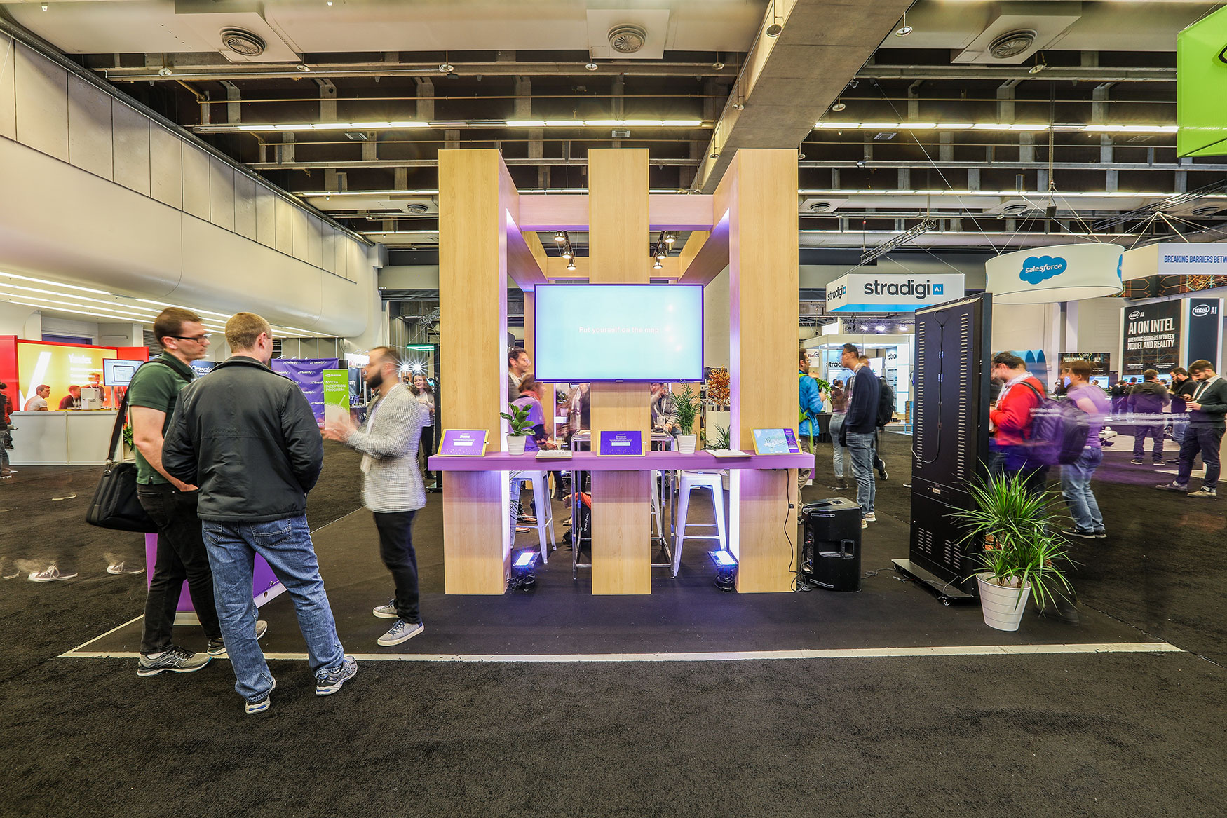 As a hometown favourite, Element AI turned to Loki Box Design for a tradeshow booth concept that would stop visitors in their tracks on the Palais des Congrès floor and showcase its trailblazing role in the industry. The unique tradeshow booth design was inspired by the AI industry’s pursuit of the elusive and intangible as they attempt to teach machines how to learn in order to greatly enhance the efficiency of business and manufacturing processes, to name just a couple of applications.