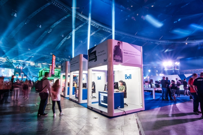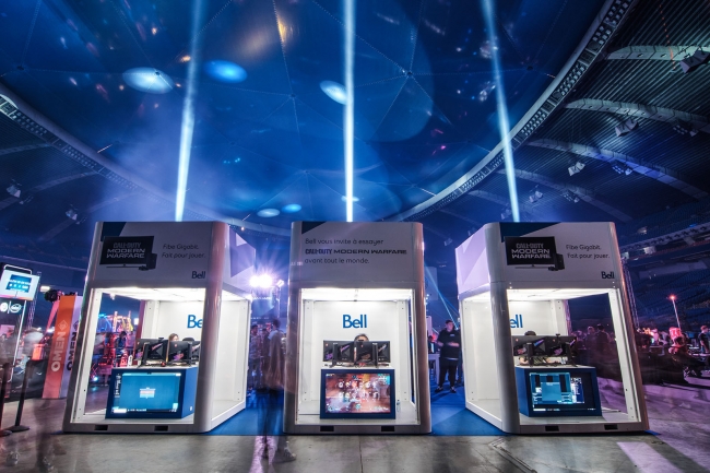 To give gamers a chance to experience the speed of Bell Fibe Internet and the power of its real-time data analytics on the event network, and also to try out the latest gaming technology on Bell smartphones, the company turned to Loki Box Design for custom booths that would optimize the gaming experience.