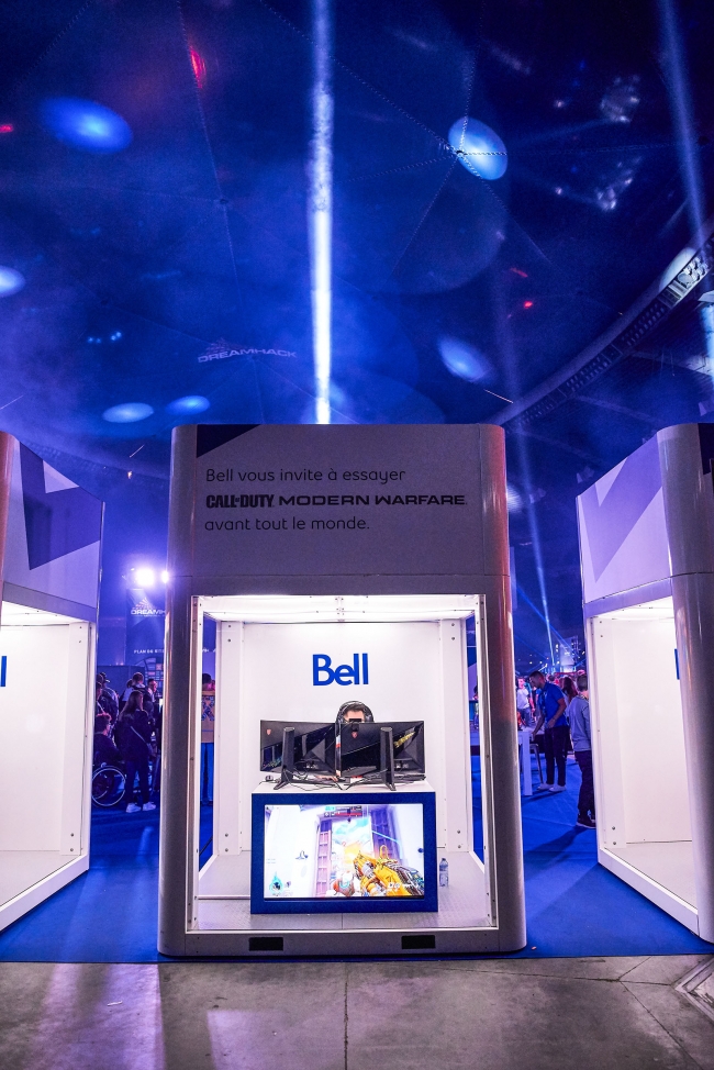 DreamHack features a variety of digital-era gaming activities, including esports, an Indie zone, a community zone and freeplay areas. Gamers could drop by the Bell area for a demo of Bell products and be among the first to try out the latest release of Call of Duty Modern Warfare. Bell subsidiary RDS conducted interviews with pro gamers in an on-site studio. Custom Bell furniture, gaming chairs and other amenities were also provided to create an immersive Bell experience within the DreamHack experience.