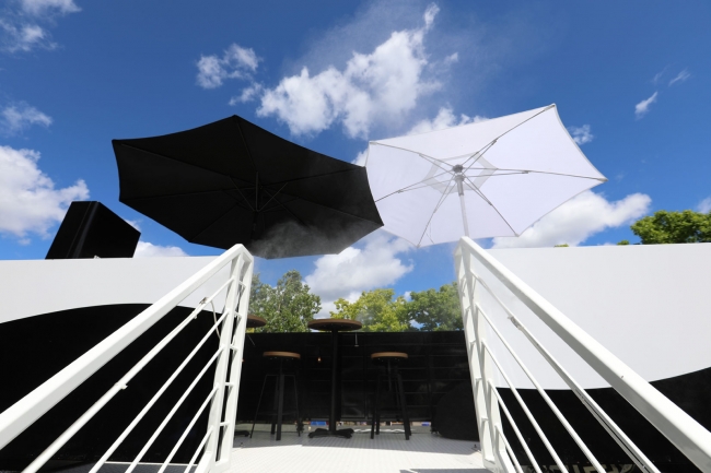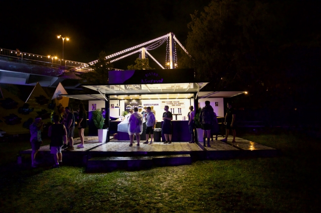 The 24 x 24 sq. ft. bistro featured an inviting bar, striking black and white polka dot floor and a VIP rooftop deck, which provided a great view of the performances at the popular festival. The structure folds down into 16 x 8 x 8, with all the bar stools and decorative elements inside, making it easy to transport to the next event, where it can be set up in a flash, ready to serve Natrel’s delicious products.