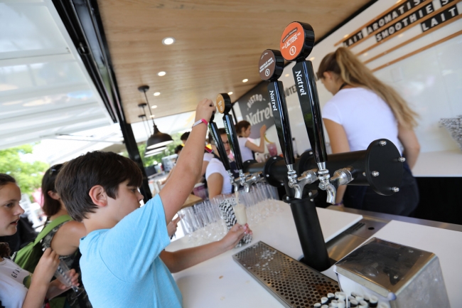 After attracting tons of interest with its milk bar on Queen Street in Toronto, Natrel was pleased to unveil its one-of-a-kind concept for the first time in Quebec at the Osheaga music fest in early August. Curious festival attendees got to choose from ice-cold milk chocolate, dark chocolate, maple and caramel latte-flavored milk on tap.